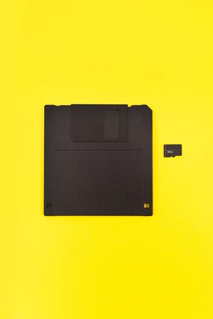 comparison between old floppy disks and micro storage cards
