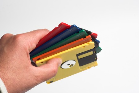 some colored floppy discs hold in hand