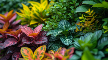 Colorful variety of plants in a lush garden, showcasing vibrant foliage and flowers, creating a rich tapestry of natural beauty.