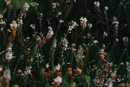 Small pink flowers in the field; floral background