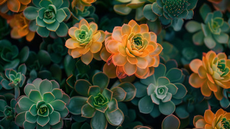 Close-up of succulent plants in varied colors, highlighting their unique shapes and textures. Perfect for gardening, nature, and botanical themes.