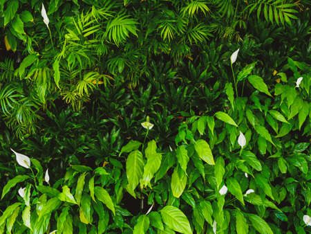 Spathiphyllum cannifolium concept, green abstract texture with white frame, natural background, tropical leaves in Asia and Thailand.