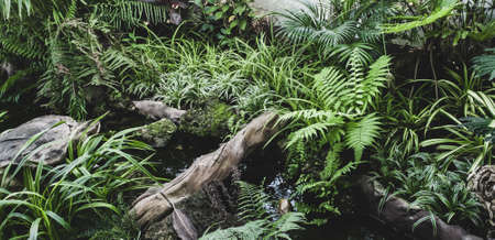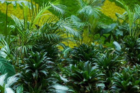 Moody lush plant botanical in tropical rainforest. Nature background
