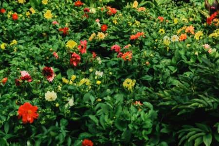 top view portrait of tropical exotic little flowers plants on summer time. Thailand Landscape Holiday travel