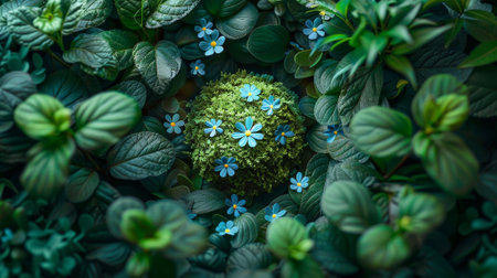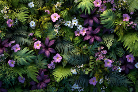 A captivating arrangement of lush green foliage featuring vibrant leaves and white daisies, perfect for conveying serenity and natural beauty in design.