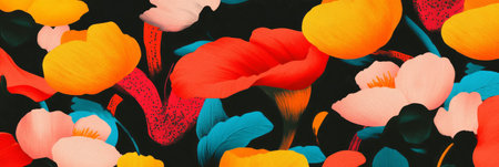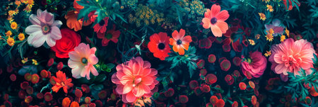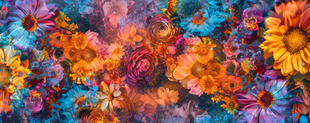 Vibrant floral pattern featuring diverse colorful flowers in various shades, ideal for spring themes and design projects, symbolizing beauty and nature