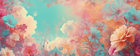 A background filled with vibrant and colorful flowers, evoking the beauty and freshness of springtime blooms. Generative AI