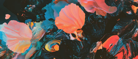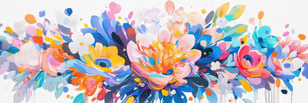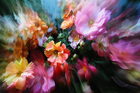 Vibrant and dynamic abstract floral whirlwind digital art with swirling. Impressionistic brushstrokes. Inspired by nature and botanical beauty. Perfect for background. Wallpaper. Or decorative design
