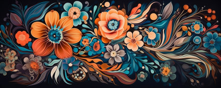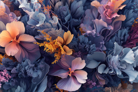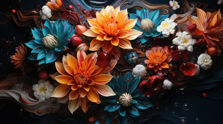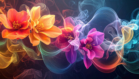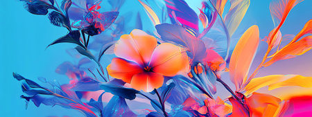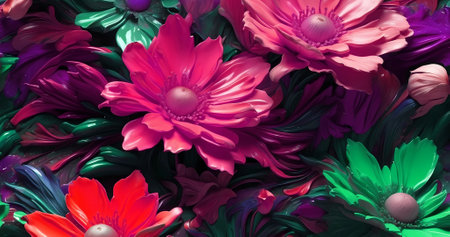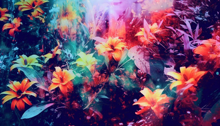 Vibrant digital artwork showcases blooming florals in a mesmerizing blend of colors. Enhances any modern space with its unique, artistic flair. Generated A.I.