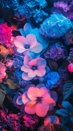 Explosions of electric blue and neon pink flowers creating a vibrant and eyecatching display of natures beauty
