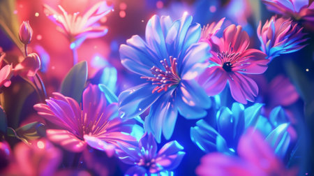 Cascade of luminous flower petals with a vibrant glow in softly lit surroundings