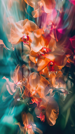 Orchid blooms swirl in dreamy light, artistic dreamy background