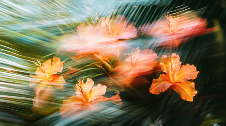 A stunning display of vibrant orange tropical flowers surrounded by softly blurred green leaves, creating a serene and artistic atmosphere perfect for nature lovers.