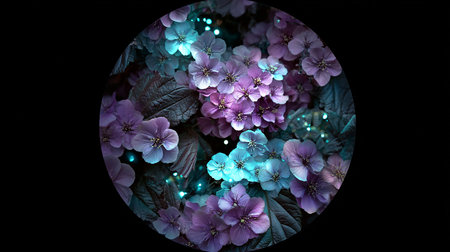 X-ray view of hydrangea flowers showcasing intricate textures and cluster formations
