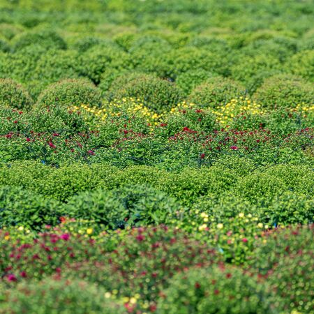 Chrysanthemum indicum field in Hung Yen Province, Vietnam from aerial view