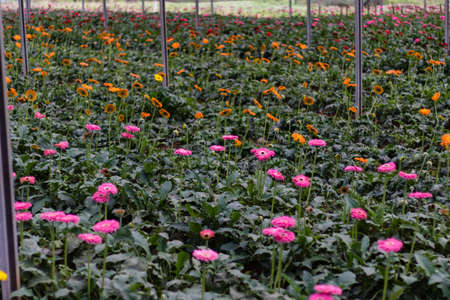 Green house full of beautiful Transvaal daisy (Gerbera) in several colors
