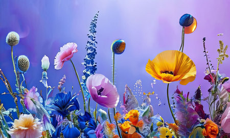 Beautiful illustration of a composition of flowers on a purple background by generative AI