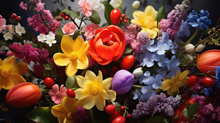 Vibrant colors of nature bouquet in full bloom generated by artificial intelligence