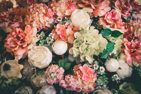 Close up colorful bunch of beautiful flowers.Vintage or retro tone.