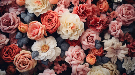 A close up of a bunch of flowers. Generative AI image.