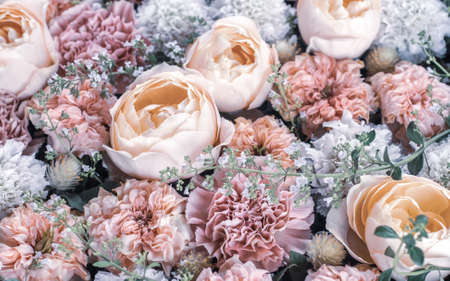 Close up colorful bunch of beautiful flowers.Vintage or retro tone