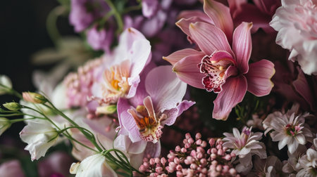 Vibrant and colorful mixed flower bouquet in a stunning still life composition for decoration
