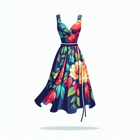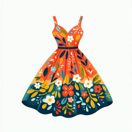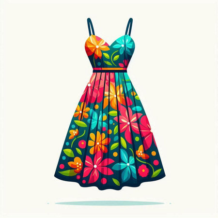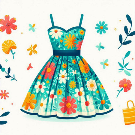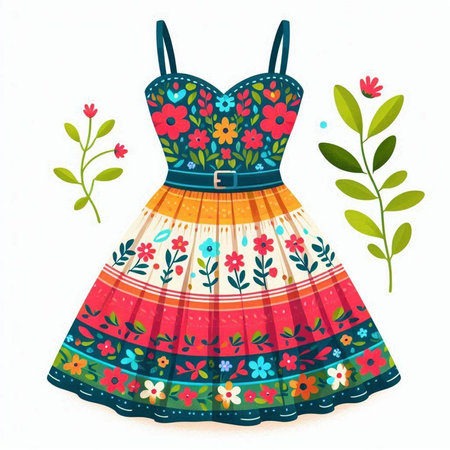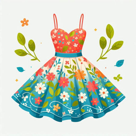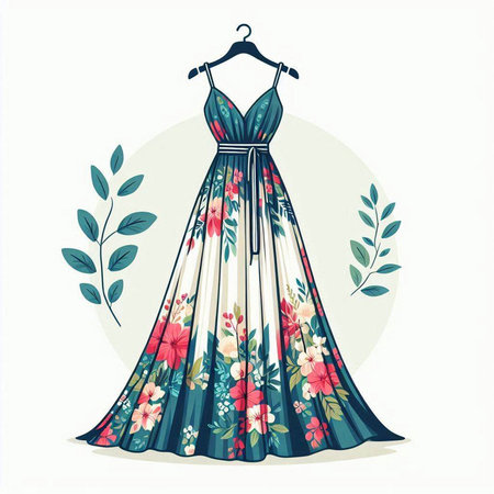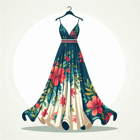 Illustration of a beautiful dress with floral pattern. Vector illustration.