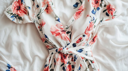 An eye-catching floral dress mockup displayed against a bright, sunny background, appealing to spring and summer fashion lovers, --ar 16:9 --v 6 Job ID: ed6a85be-88fb-4b3e-bf81-e8b3fac57fba