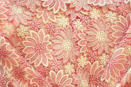 Fabric texture with lace. a fine open fabric, typically one of cotton or silk, made by looping, twisting, or knitting thread in patterns and used especially for trimming garments.