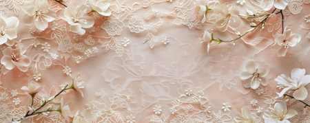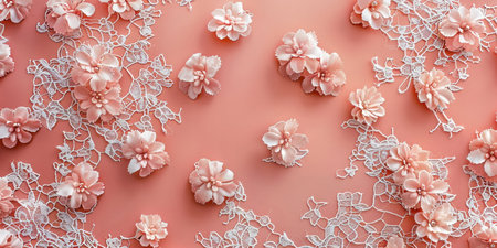Floral pattern with white flowers and lace on peach background, AI generated