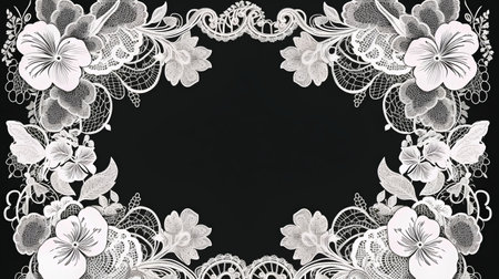 Intricate lace design overlay featuring delicate floral elements on a dark background