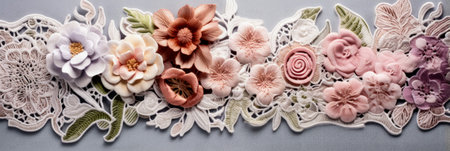 Close up of lace with flowers on it and background. Generative AI.