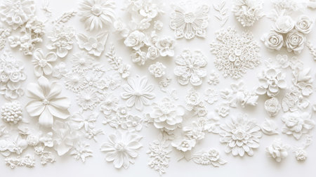 an intricate white pattern on a white surface, made of delicate flowers, showcases eco-friendly craftsmanship and bio-art. the design features intricate details, highlighting the meticulous and intricate craftsmanship. the white pattern exudes elegance and sophistication, while the eco-friendly materials used in its creation add a touch of sustainability to the overall aesthetic. ai generated