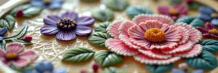 Explore vibrant floral embroidery patterns showcasing handcrafted artistry and texture
