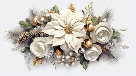 A stunning close-up of an elegant white flower with gold accents surrounded by festive decorations, perfect for inspiring holiday decor ideas and seasonal charm.