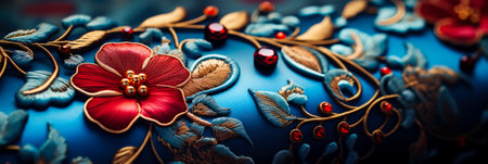 Macro capture of exquisite embroidery on brocade fabric accentuating complex details