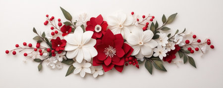 This handmade card features unique mixed-media floral designs Red and white paper flowers, delicate green leaves, and tiny red berries create a stunning 3D effect Perfect for special occasions, this exquisite card showcases intricate artistry and is handcrafted with precision, making it a memorable gift or keepsake of perfect floral AI Generative