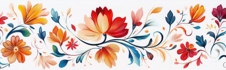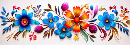 Mexican embroidery, flowers, floral ethnic pattern. Web banner with copy space. Generative AI