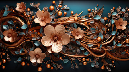 3D illustration of a wall mural. Refined and elegant floral details with a harmonious blend of classic and modern elements. AI generated.