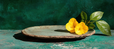 Blooming Beauty: A Captivating Overhead View of Cream and Yellow Flowers on a Plate--AR 3:2