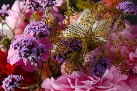 Grand bouquet of autumn dahlia, fennel and verbena flowers.