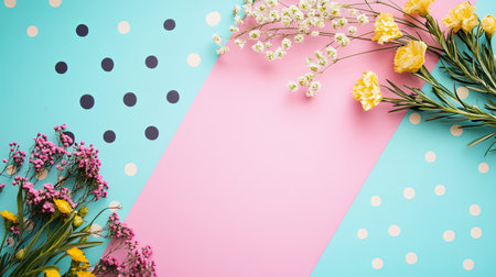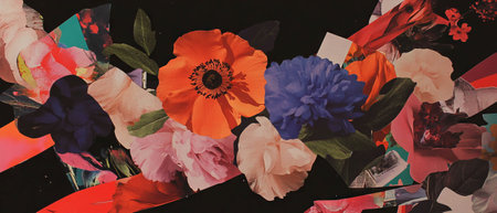 A banner featuring a collection of dried flowers arranged in a geometric, modern pattern, with bright, vibrant colors that add energy and excitement. Generative AI