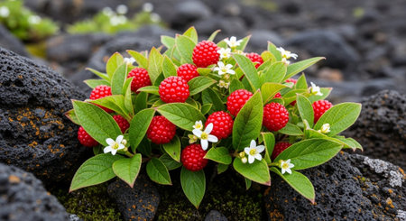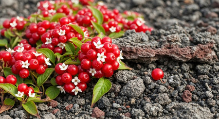 Red flowers volcano. fauna beauty. Generate AI