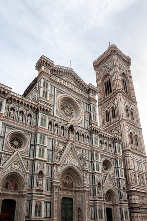 Facade detail of Basilica di Santa Maria del Fiore - famous cathedral church of Florence in Italy