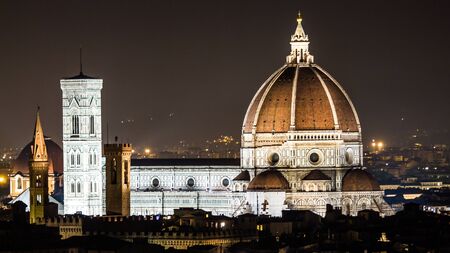 Cathedral Saint Mary of the Flower at night, Basilica di Santa Maria del Fiore in Tuscany Florence, Italy. Travel outdoors sightseeing background