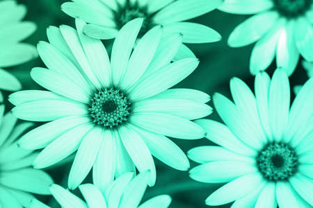Osteospermums close up in trendy turquoise mint, selective focus