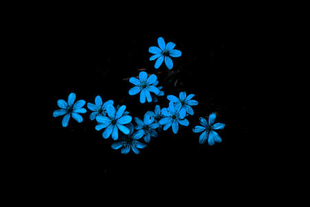 Blue or purple Kidneywort anemone flower isolated on black background. Shallow depth of field. High quality photo