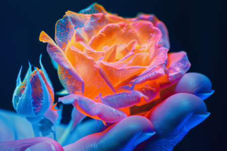 Thermography of a rosebud in the hand, close-up.