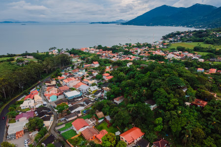 Costal town near Ribeirao da Ilha in Florianopolis, Brazil. Drone view
