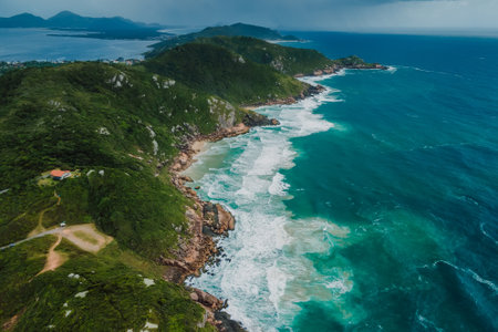Aerial view of waves at Campeche beach in Florian?polis Brazil